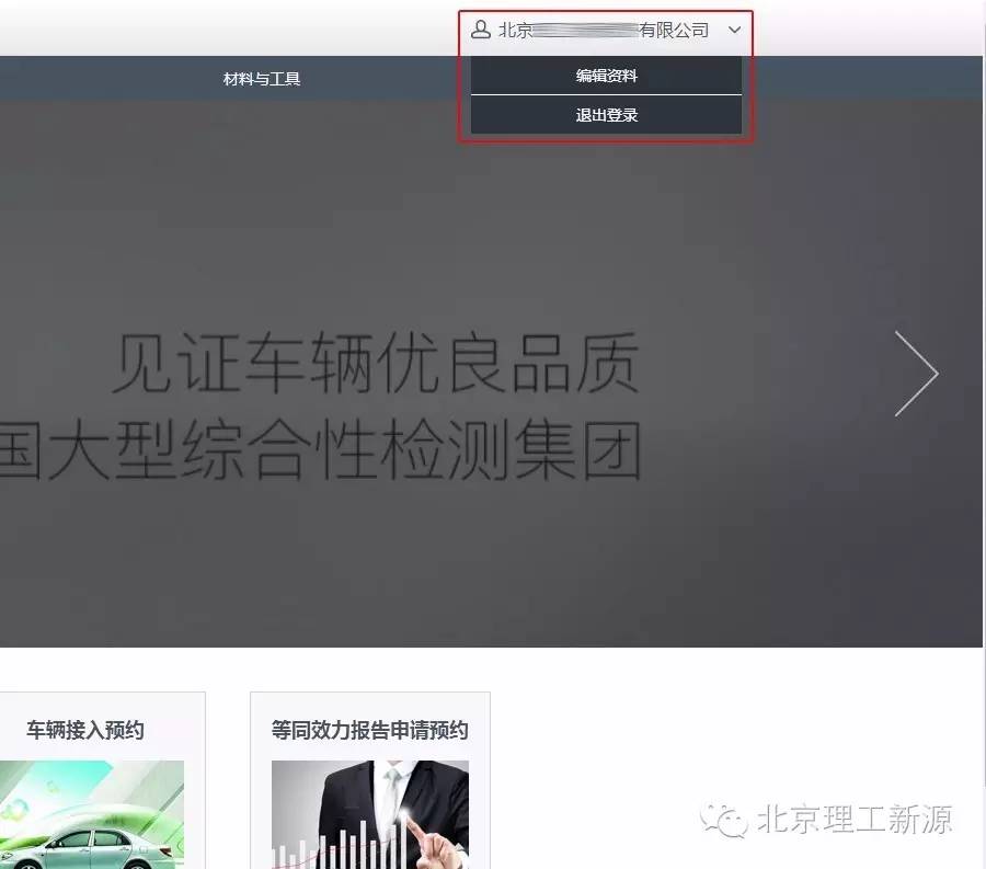 ①登陆成功后系统显示注册用户名,可以编辑账户资料。(已通过审核的账户修改资料,账户状态会变成“待审核”,待审核状态无法预约相关业务)