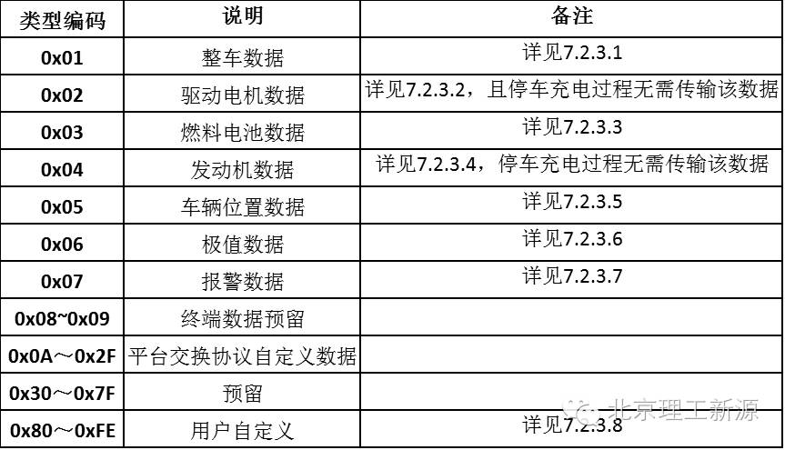 实时数据指车辆在运行过程中产生的运行数据,包含车辆行驶状态、充电状态、停止状态数据;当车辆数据行驶状态与停止状态时,所有国标要求的可传输数据都应通过实时数据进行上送,当车辆处于充电状态时,除电机数据因电机控制器停止工作可不上送外,其余数据都应维持上送状态。