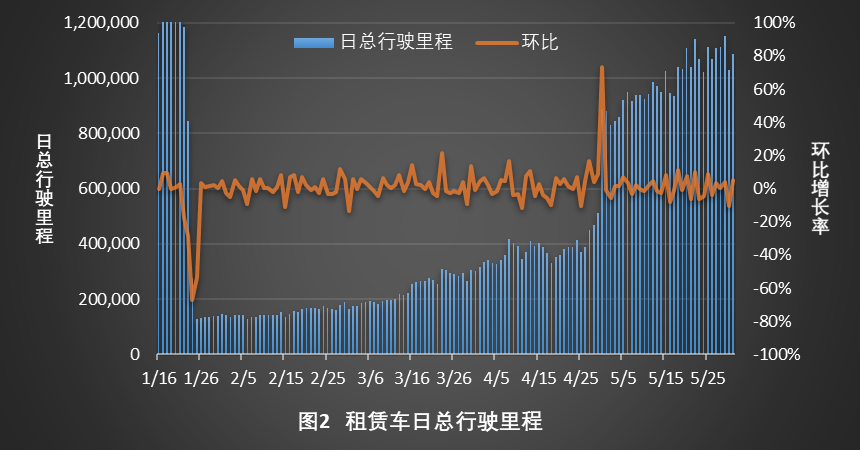 2020年1月新能源租赁车日总行驶里程可达到116万左右,2月份和3月份车辆日总行驶里程明显下降,平均仅为封城前的1/10左右。由于“封城“的限制和疫情的影响,居民的出行需求明显减少;4月8日武汉“解封”,解封后居民各项活动仍在恢复中,租赁车市场复苏情况接近节前水平。
