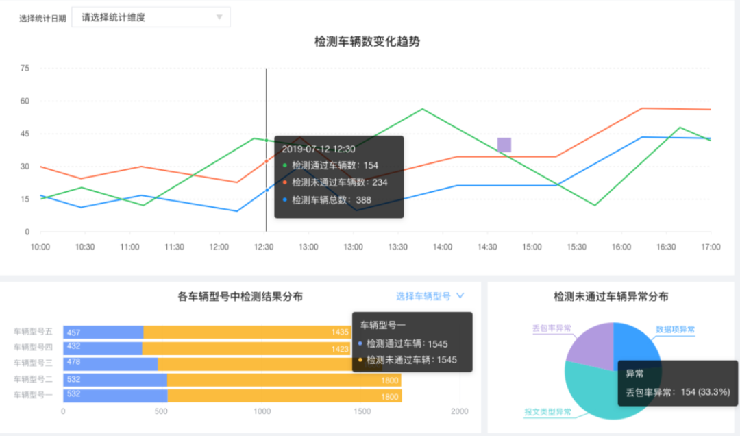 3-查看针对多辆车的检测结果统计分析,反映大批次车辆的数据质量情况