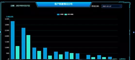 通过这些可视化的图形化结果展示,可以帮助企业快速的了解自己的新能源汽车运营情况,便于多人同时查看,针对不同的销售区域和不同的运营区域制定更加适合自己的方案,也便于企业日常监测、分析研判、展示汇报等等。