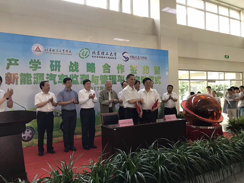 5月17日上午,由北华航天工业学院、北京理工大学电动车辆国家工程实验室、廊坊中航星北斗电子科技有限公司主办的产学研战略合作签约暨“新能源汽车监测与管理平台”启动仪式在北华航天工业学院举行。